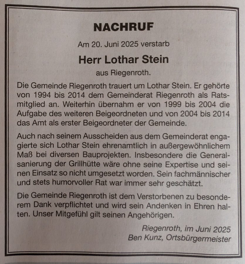 Lothar Steingestorben am 20. Juni 2025
